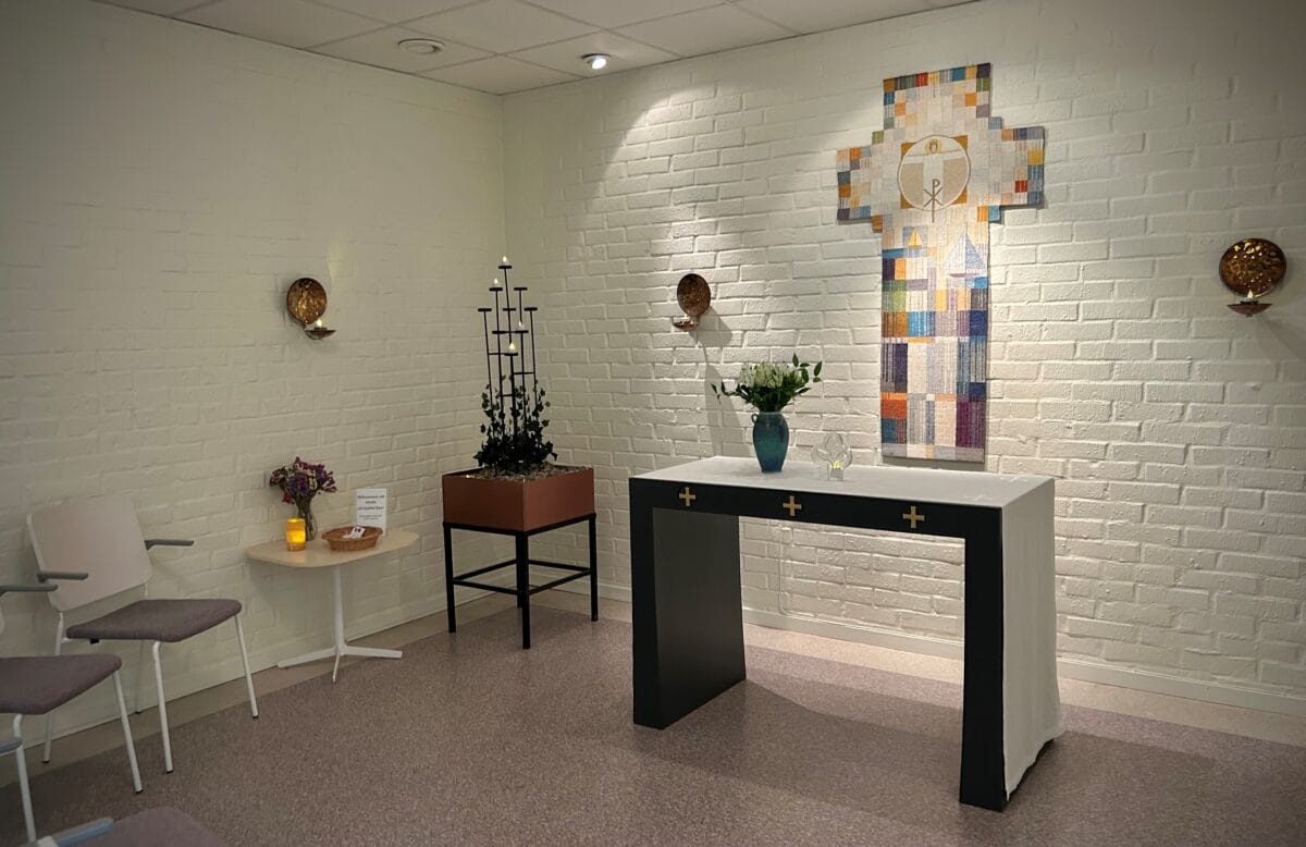 Sjukhuskyrkan vid Hallands Sjukhus Varberg finns vid Uppgång B, vårdavdelningsentrén.